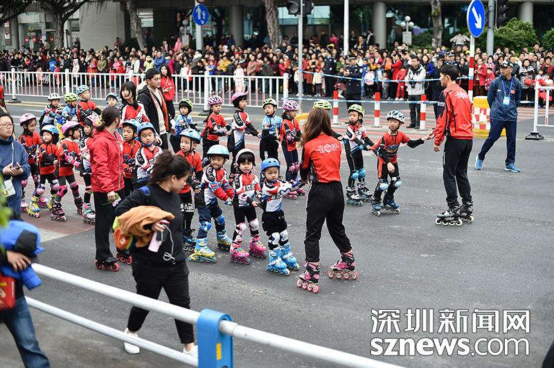 由孩子們組成的滑旱冰方隊給活動增添了活力