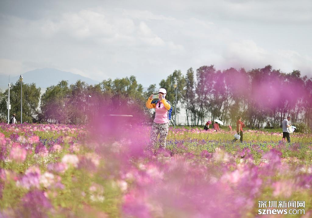 游客在花海之間游覽,人與自然之間一片和諧