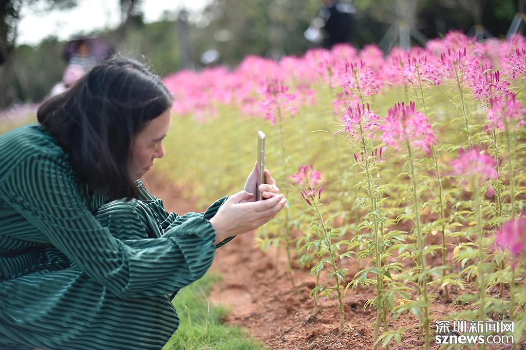 醉蝶花吸引了不少攝影愛好者拿出愛機進行拍攝