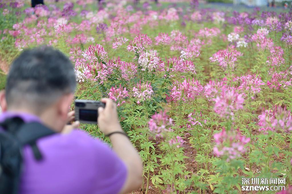 醉蝶花吸引了不少攝影愛好者拿出愛機進行拍攝