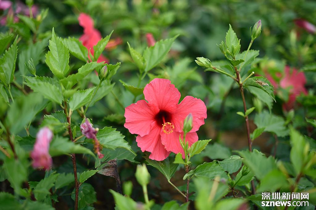 大紅花在綠葉的襯托下格外顯眼,充滿(mǎn)春天氣息