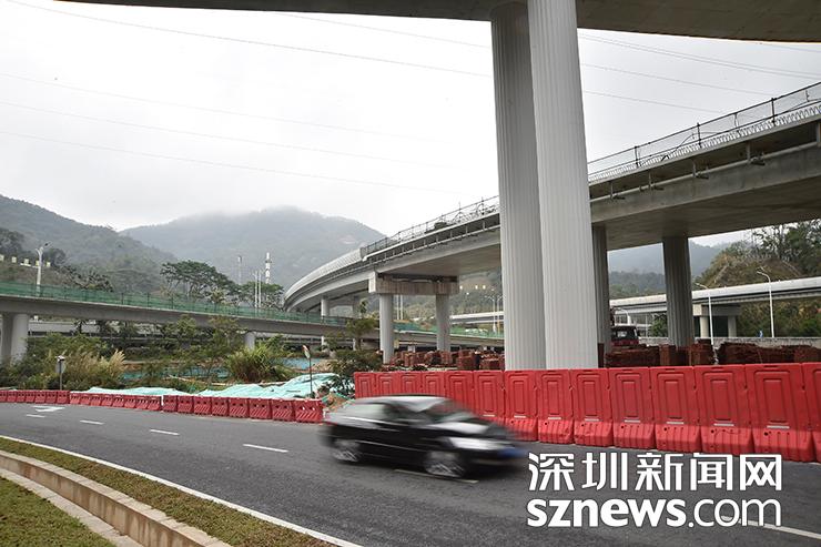 坂銀通道工程南起黃木崗立交北側(cè),向北經(jīng)泥崗立交沿北環(huán)大道西側(cè)高架布設,上跨北環(huán)后以下沉隧道方式穿越金湖調(diào)蓄湖上庫,繼續(xù)下穿銀湖路進入雞公山,穿越下坪垃圾填埋場后上跨廈深鐵路梅林隧道,出隧道后上跨南坪快速,向北接坂雪崗大道,終于環(huán)城路路口。主線長約7.6公里,設計車速50公里/小時。全線設特長隧道1座,相交節(jié)點4處。