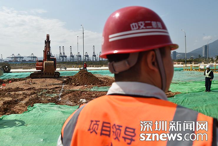 位于鹽田區(qū)的鹽港東立交工程現(xiàn)場施工團(tuán)隊(duì)人員在現(xiàn)場進(jìn)行督導(dǎo)