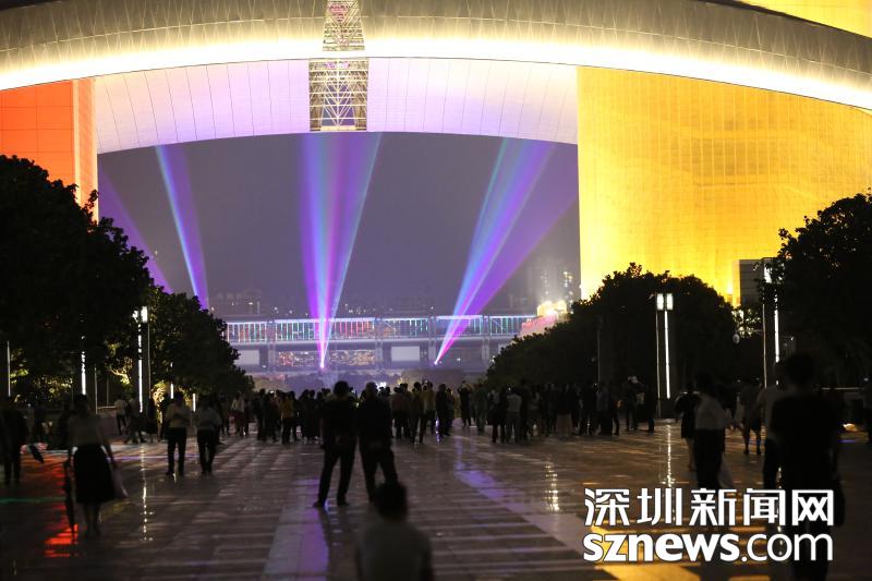 現(xiàn)場(chǎng)觀看燈光秀的市民
