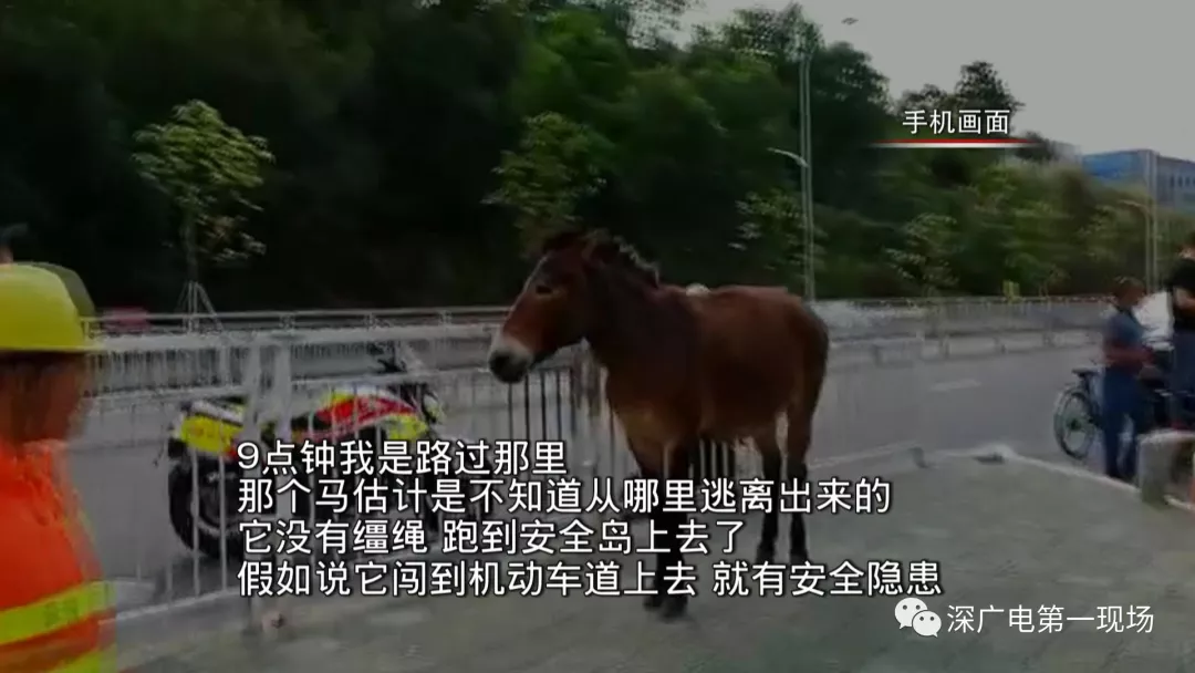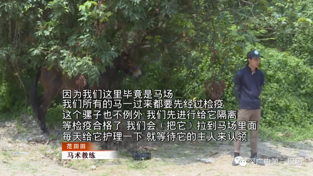 成年騾子路邊站崗是家養(yǎng)的,按照熱心市民留下的大概方位。記者在觀瀾街道庫坑社區(qū)平安路段終于看到了這個“稀客”的真容,只不過此時的它已經(jīng)被套上了韁繩,服服帖帖的站在馬術(shù)教練旁邊。
