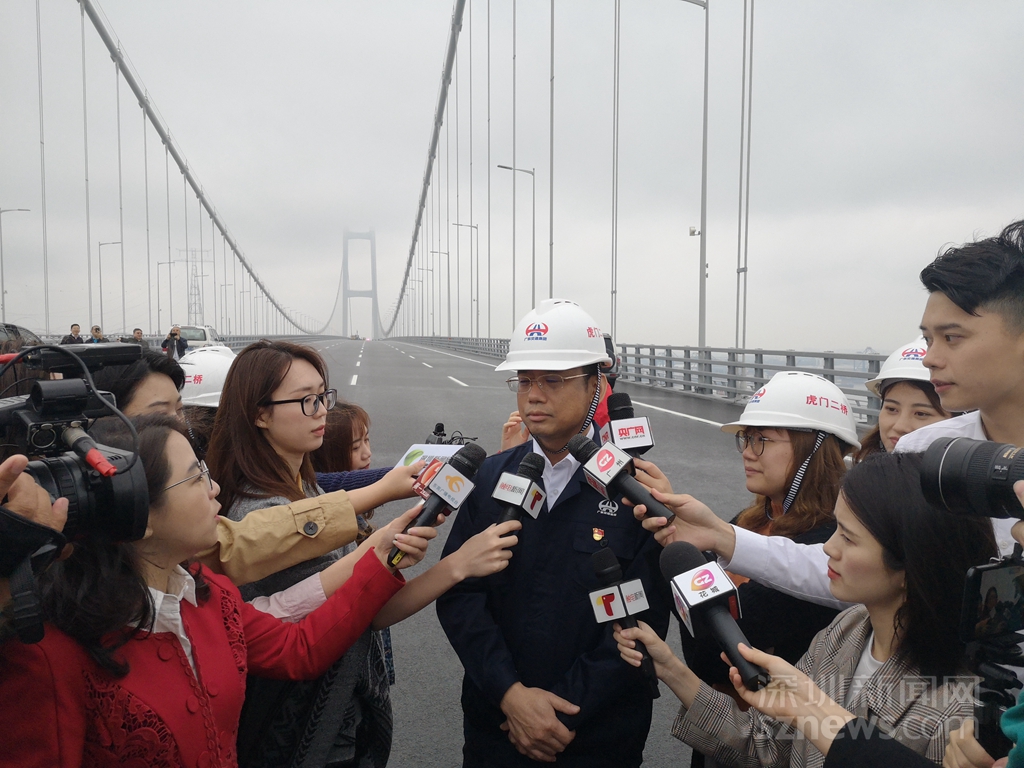 虎門二橋項目營運負責人高嚴廣(中)介紹虎門營運情況