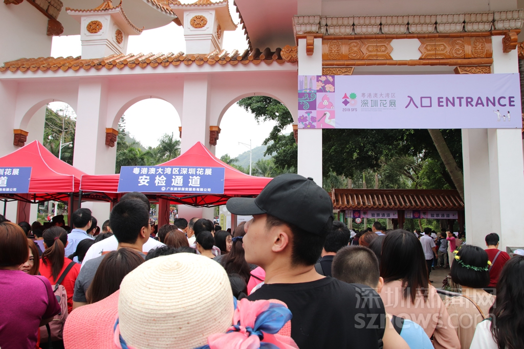 仙湖植物園入口處,排隊(duì)的人需經(jīng)過(guò)安檢,再進(jìn)入檢票通道