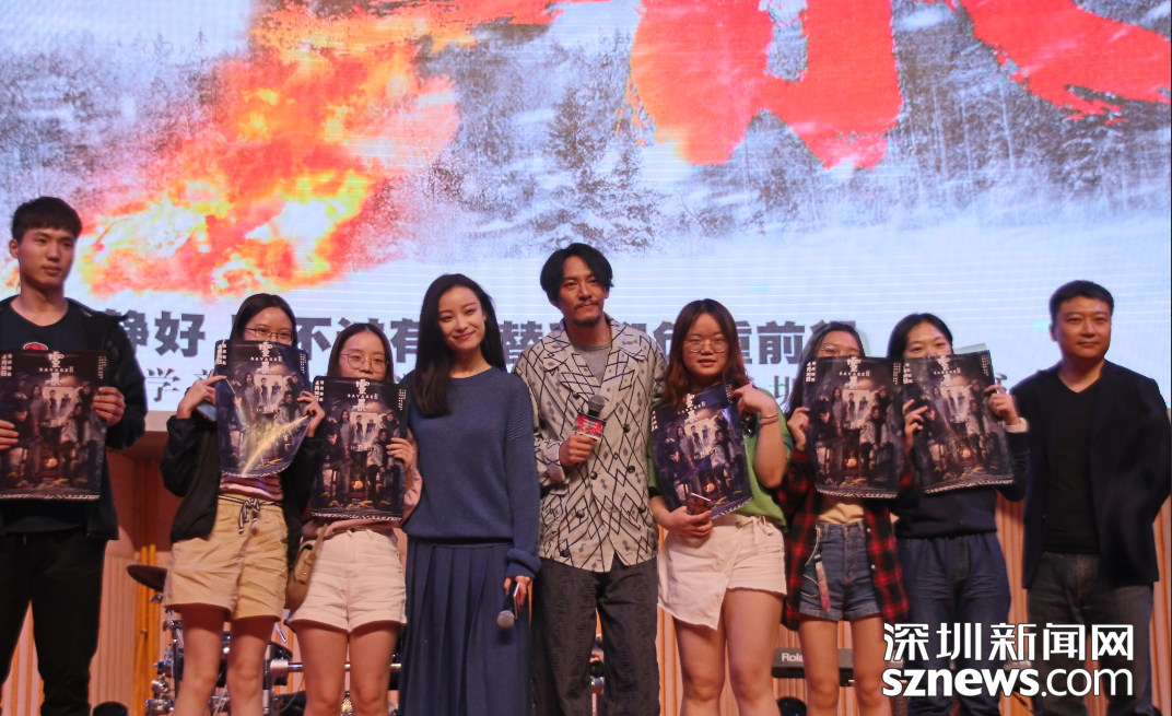 張震倪妮與深圳大學(xué)學(xué)生合影