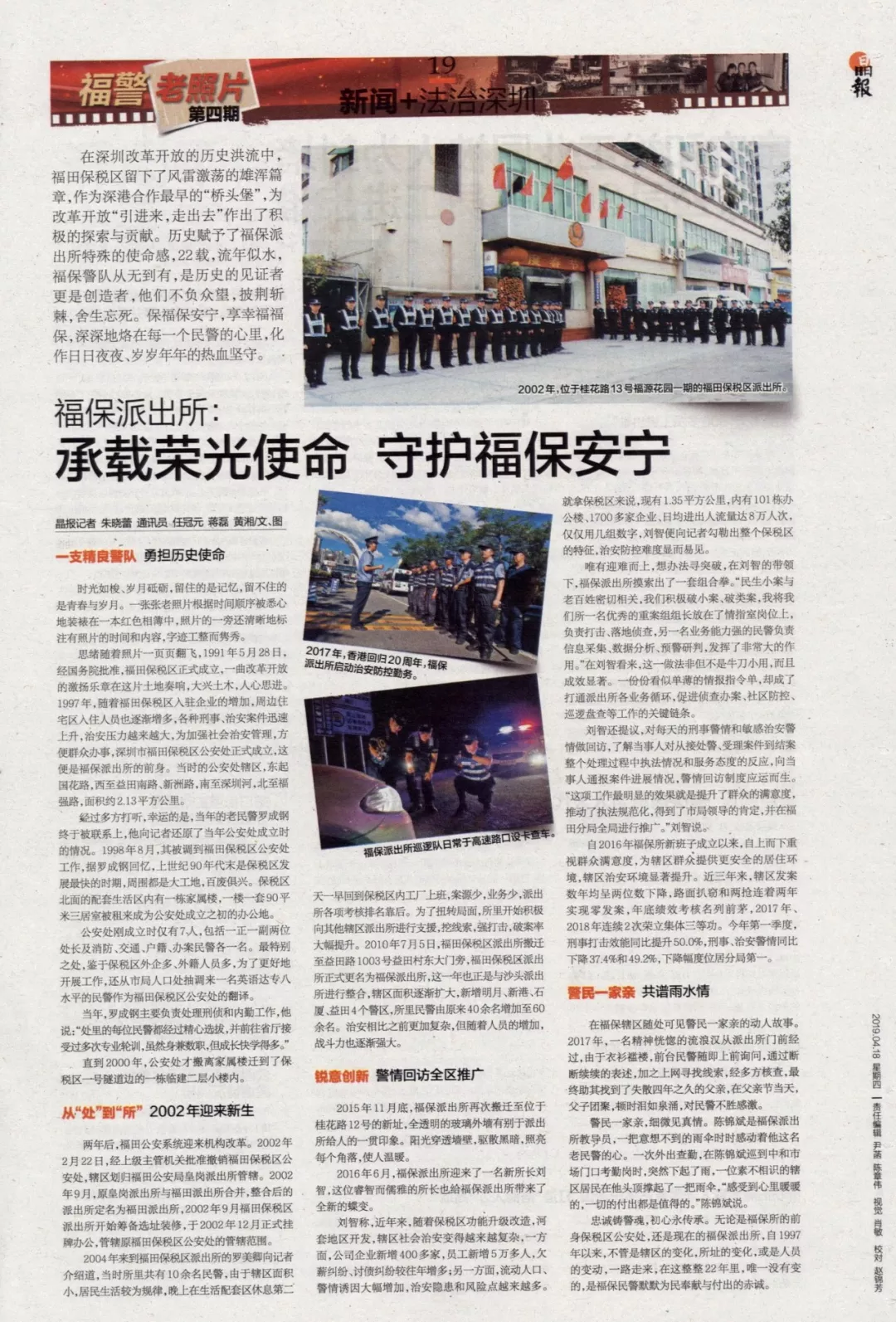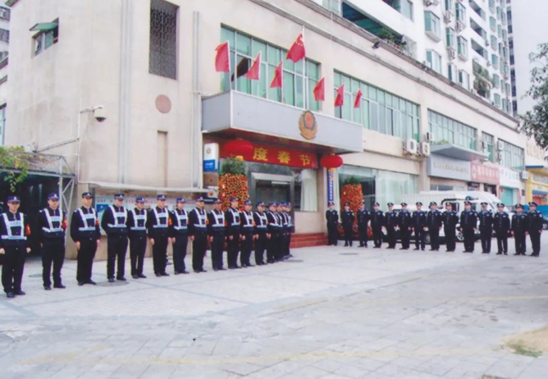 思緒隨著照片一頁(yè)頁(yè)翻飛,1991年5月28日,經(jīng)國(guó)務(wù)院批準(zhǔn),福田保稅區(qū)正式成立,一曲改革開放的激揚(yáng)樂章在這片土地奏響,大興土木,人心思進(jìn)。1997年,隨著福田保稅區(qū)入駐企業(yè)的增加,周邊住宅區(qū)入住人員也逐漸增多,各種刑事、治安案件迅速上升,治安壓力越來越大,為加強(qiáng)社會(huì)治安管理,方便群眾辦事,深圳市福田保稅區(qū)公安處正式成立,這便是福保派出所的前身。當(dāng)時(shí)的公安處轄區(qū),東起國(guó)花路,西至益田南路、新洲路,南至深圳河,北至福強(qiáng)路,面積約2.13平方公里。