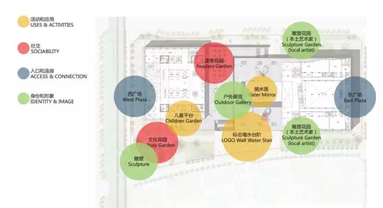 同時(shí),設(shè)計(jì)定義了不同的功能性景觀分區(qū),一靜一動(dòng)、或?qū)庫o或喧囂、光影交融、密集與開放、集聚與獨(dú)處的可變空間,為主體建筑附加了多樣化的室外活動(dòng)場所,例如專門為圖書館訪客設(shè)置的讀者花園、兒童平臺(tái)、文化花園,以及在美術(shù)館區(qū)域設(shè)置的雕塑花園、戶外展覽區(qū)及鏡水面廣場。滿足不同的活動(dòng)場景下市民對空間的需求,讓城市空間真正地為城市及市民所用。