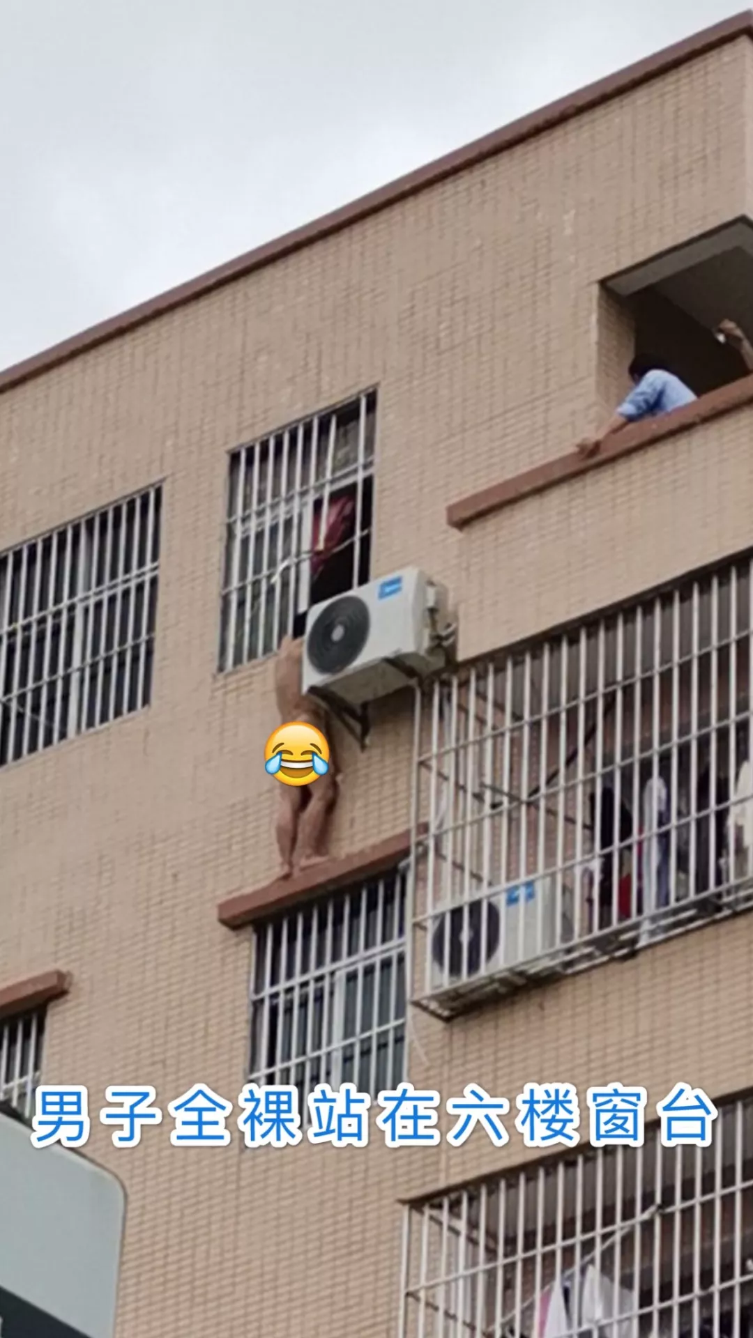 一名男子裸身站在6樓窗外