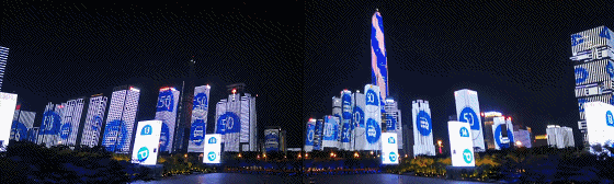 樓體的燈光和音樂同步登場
