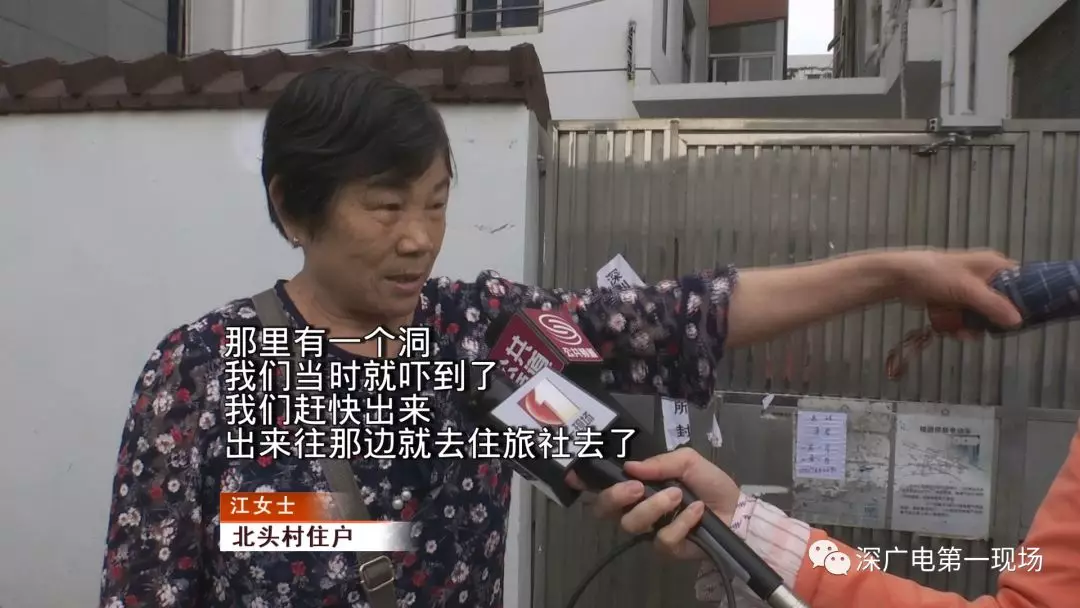 出現(xiàn)塌陷的路面位于桂廟路由西往東方向,凌晨一點鐘左右,居住在北頭村的江女士,就被一陣急促的敲門聲給吵醒了,有人不斷喊著趕緊下樓。