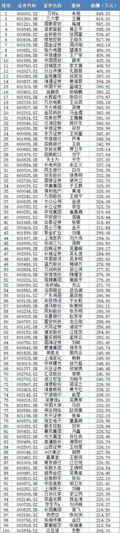 薪酬排行榜前100