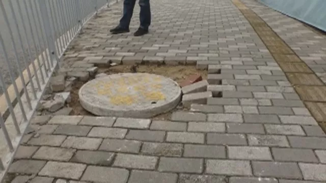 記者在現(xiàn)場(chǎng)發(fā)現(xiàn),龔女士踩到的井蓋旁邊有幾個(gè)通信光纜箱,附近有四五個(gè)規(guī)格相仿的井蓋,每個(gè)井蓋上都有l(wèi)ogo,而沒蓋好的井蓋不僅沒有標(biāo)識(shí),甚至還有被涂抹過的痕跡。就在此時(shí),聯(lián)通的工作人員來辨認(rèn)井蓋后表示,這個(gè)井蓋并不屬于他們。