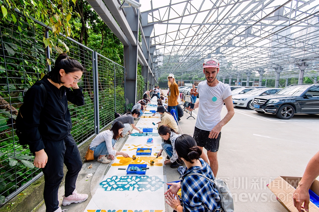 開幕前,藝術(shù)家邀請公眾與志愿者共同完成花磚涂鴉作品《安全地帶》(主辦方供圖)