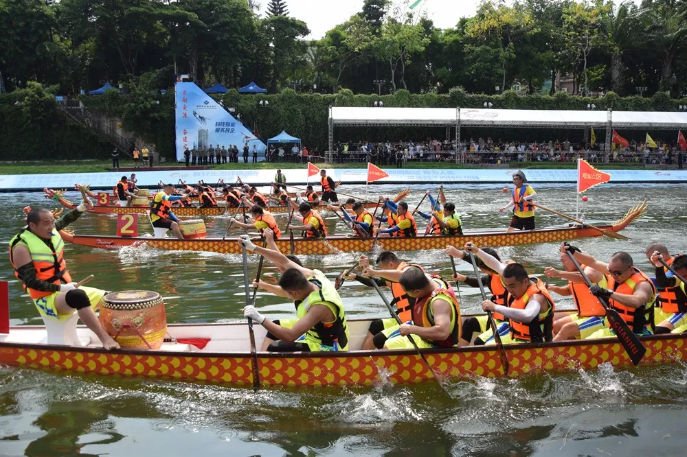 5月19日上午9點,由深圳市文化廣電旅游體育局、龍華區(qū)人民政府主辦,龍華區(qū)文化廣電旅游體育局、觀湖街道辦事處承辦的龍華區(qū)2019年觀瀾河國際龍舟賽社區(qū)組、機(jī)關(guān)企事業(yè)組標(biāo)準(zhǔn)龍舟(12人龍舟)350米男子直道競速賽正式打響。