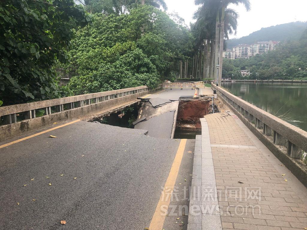 羅湖環(huán)湖路銀賓橋橋面坍塌現(xiàn)場
