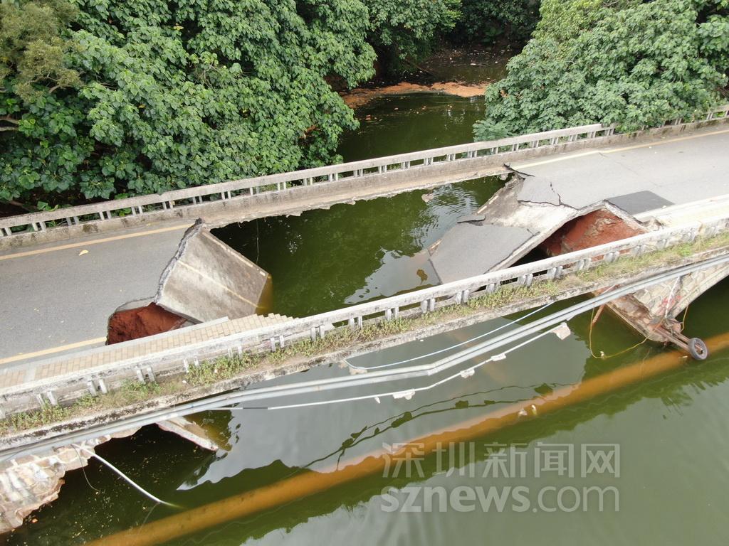 羅湖環(huán)湖路銀賓橋橋面坍塌現(xiàn)場