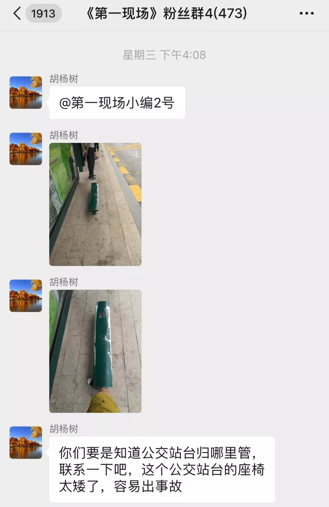 第一現(xiàn)場(chǎng)的粉絲在粉絲群發(fā)來(lái)了幾張照片,要好好給,公交站臺(tái)的候車凳挑挑刺。