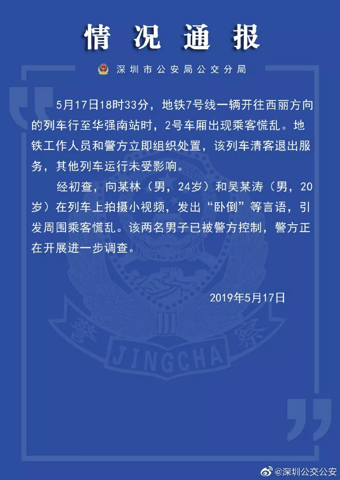 當天,警方發(fā)布通報稱,這兩名男子已經(jīng)被控制住了。