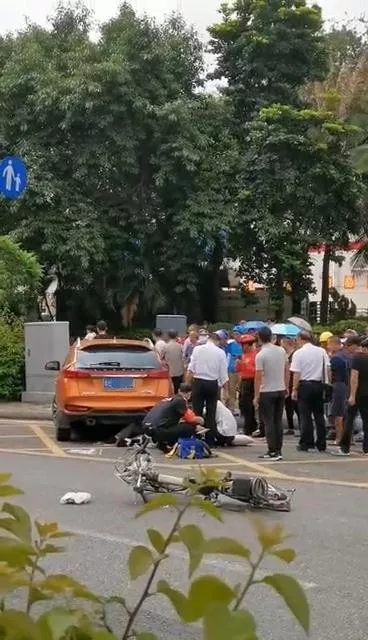 現(xiàn)場(chǎng)可以看到。橙色SUV已經(jīng)停在路邊。車(chē)旁是一輛被撞翻的電單車(chē),救護(hù)車(chē)到達(dá)現(xiàn)場(chǎng)后,迅速對(duì)男子實(shí)施搶救。