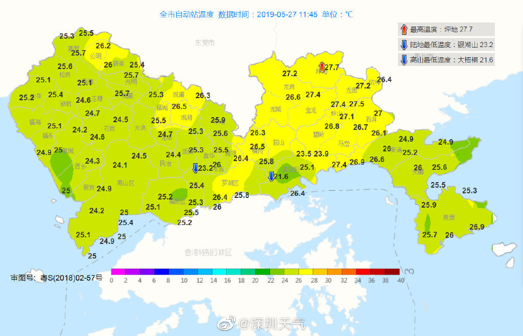 深圳市氣象臺(tái)于2019年05月27日09時(shí)15分將暴雨紅色和暴雨橙色分區(qū)預(yù)警降級(jí)為暴雨黃色預(yù)警,預(yù)計(jì)今天白天我市仍有雷雨,部分時(shí)間雨勢(shì)較大,全市暴雨黃色和雷電預(yù)警生效中,請(qǐng)繼續(xù)做好防御。