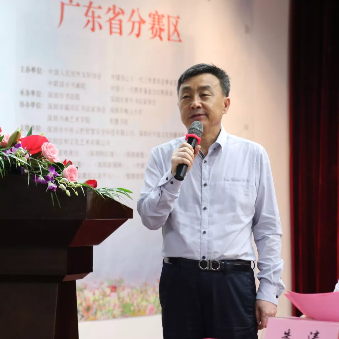 原深圳市文聯(lián)副主席、“中華好書法”全國中小學(xué)師生書法大賽書法大賽組委會副主任兼廣東省分賽區(qū)組委會主任顧煥金,在啟動儀式上他從政治意義,文化意義及時(shí)代意義三個方面,闡述了這次大賽的重要性、必要性。并向全省中小學(xué)師生發(fā)出了邀請,他希望廣大師生積極參與本次大賽,以高水平的書法作品展示廣東中小學(xué)師生的書法藝術(shù)水平,并通過本次大賽,進(jìn)一步弘揚(yáng)祖國優(yōu)秀傳統(tǒng)文化,助力全省書法教師隊(duì)伍建設(shè),推動中小學(xué)書法教育的健康發(fā)展,促進(jìn)優(yōu)秀傳統(tǒng)書法及書法精神的滲透與傳播。
