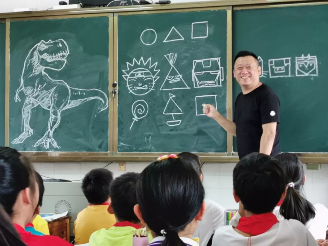 牛刀小試的李老師迅速吸引了同學(xué)們的注意力。接著,李老師用最簡單的圖形組合變化,帶領(lǐng)孩子們認(rèn)識(shí)到其實(shí)美術(shù)并不艱深。圓角方,這三個(gè)最基本的圖形,只要會(huì)組合,都可以變成一幅畫。