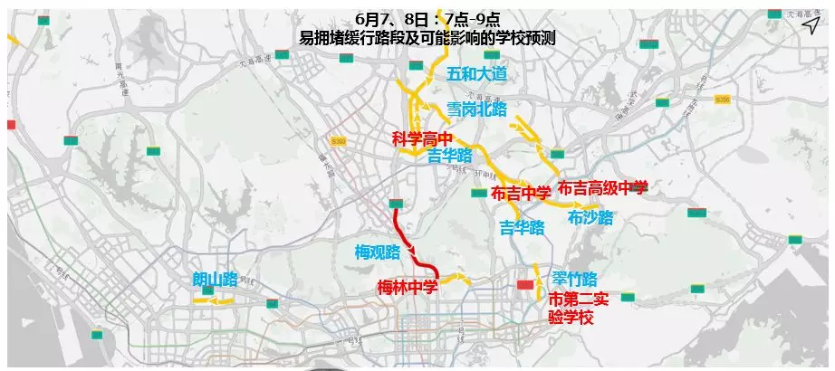 今年端午假期適逢高考,6月7日-8日8:30-12:00、14:30-17:30時段內(nèi)考場周邊路段車輛集中,尤其羅湖區(qū)、福田區(qū)交通壓力較大,梅觀路、沿河南路、布心路、福龍路、留仙大道及景田路等部分道路易出現(xiàn)擁堵,建議市民綠色出行,及時留意交通管制措施,合理規(guī)劃線路。此外,途徑考點周邊區(qū)域時請勿亂鳴喇叭,共同為考生營造良好的考試環(huán)境。