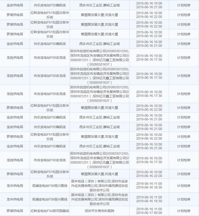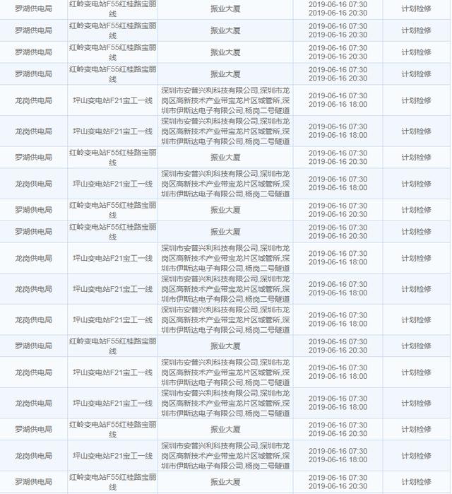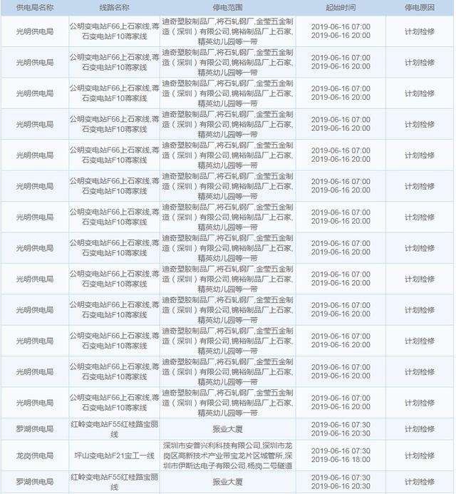 【6月16日停電計(jì)劃】