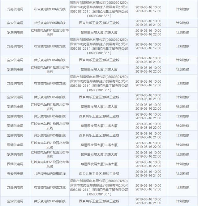 南方電網(wǎng)發(fā)布6月13日至6月16日深圳停電計(jì)劃 涉及多個(gè)區(qū)