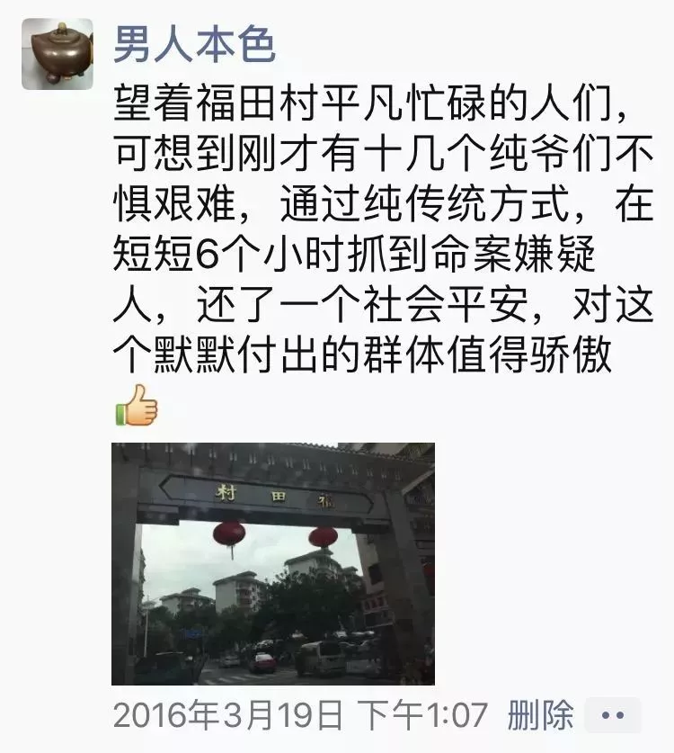 ▲香蜜湖派出所民警吳權朋友圈