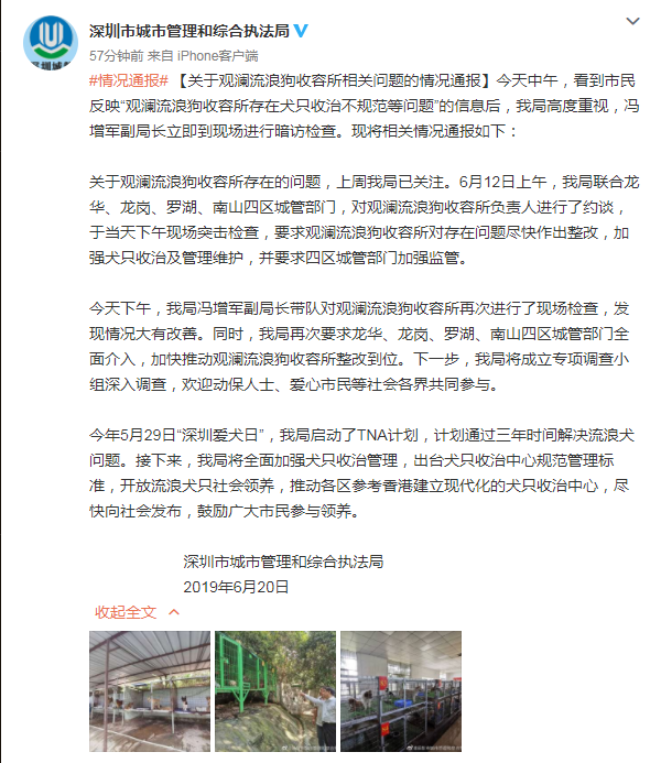 關(guān)于觀瀾流浪狗收容所相關(guān)問題的情況通報(bào)