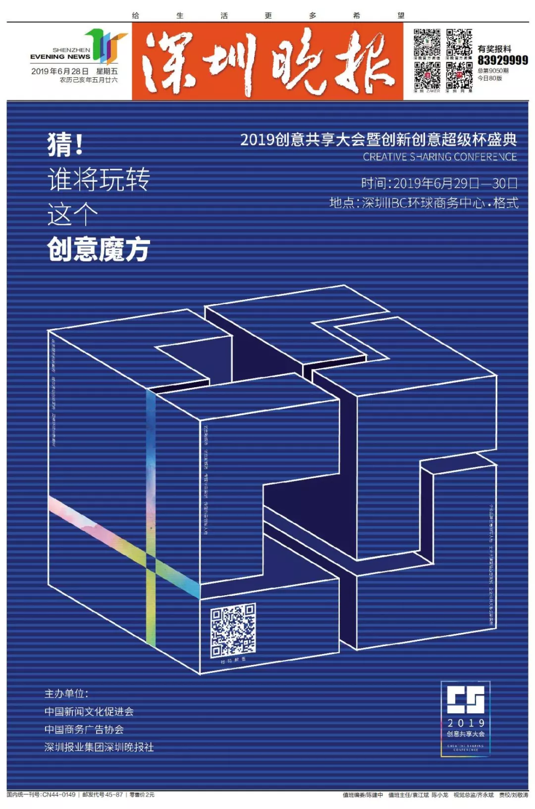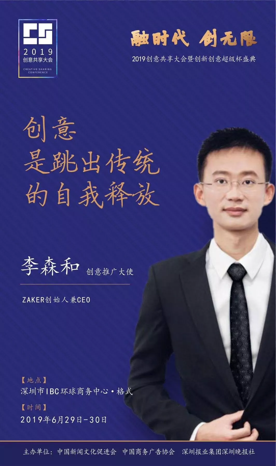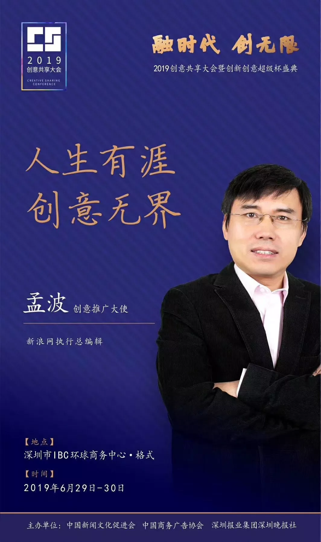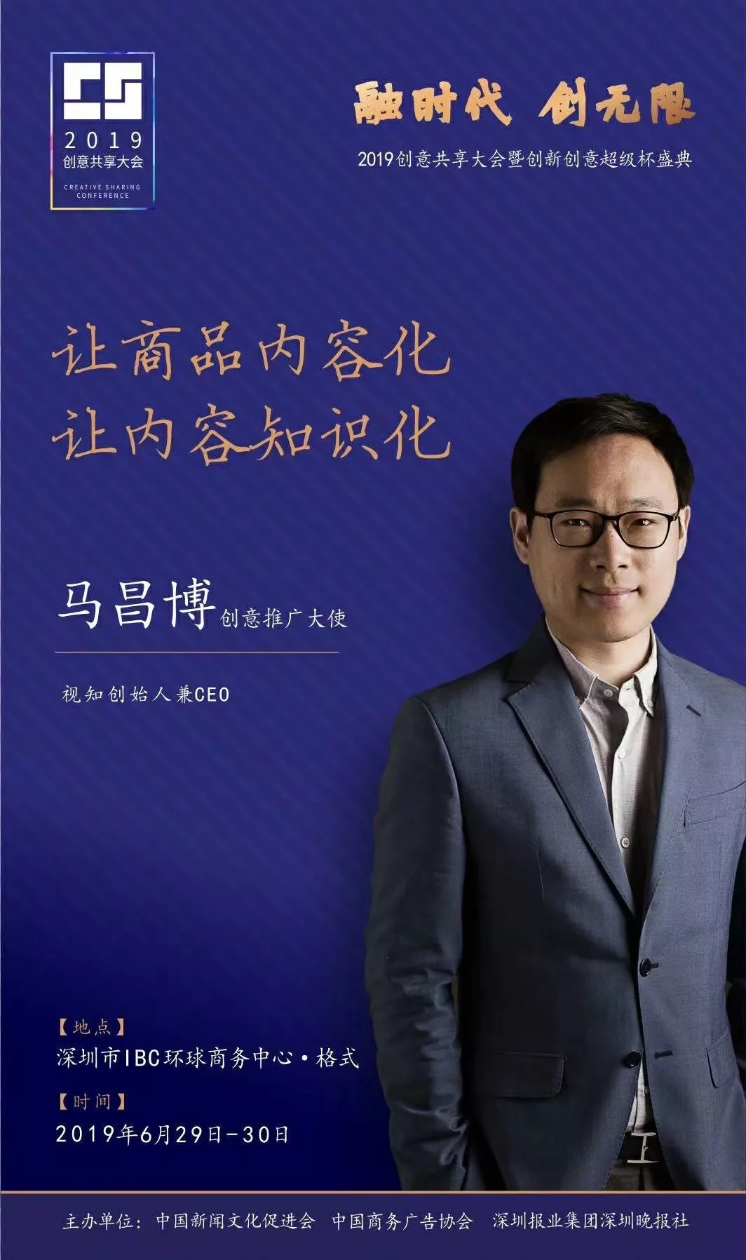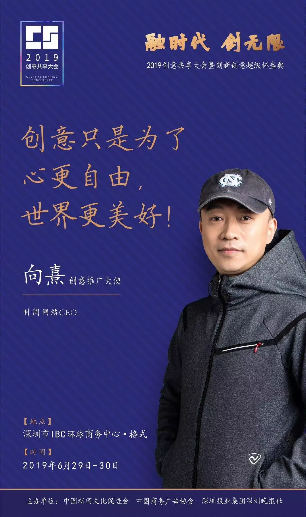 為了展現(xiàn)創(chuàng)意中國的精神風貌和創(chuàng)意傳媒的文化力量,構建創(chuàng)新創(chuàng)意共同體,擘畫美好圖景和未來趨勢,2019年6月29日至30日,由中國新聞文化促進會、中國商務廣告協(xié)會、深圳報業(yè)集團深圳晚報社等聯(lián)合主辦的“融時代創(chuàng)無限——2019創(chuàng)意共享大會暨創(chuàng)新創(chuàng)意超級杯盛典”將在深圳市IBC環(huán)球商務中心隆重舉辦。