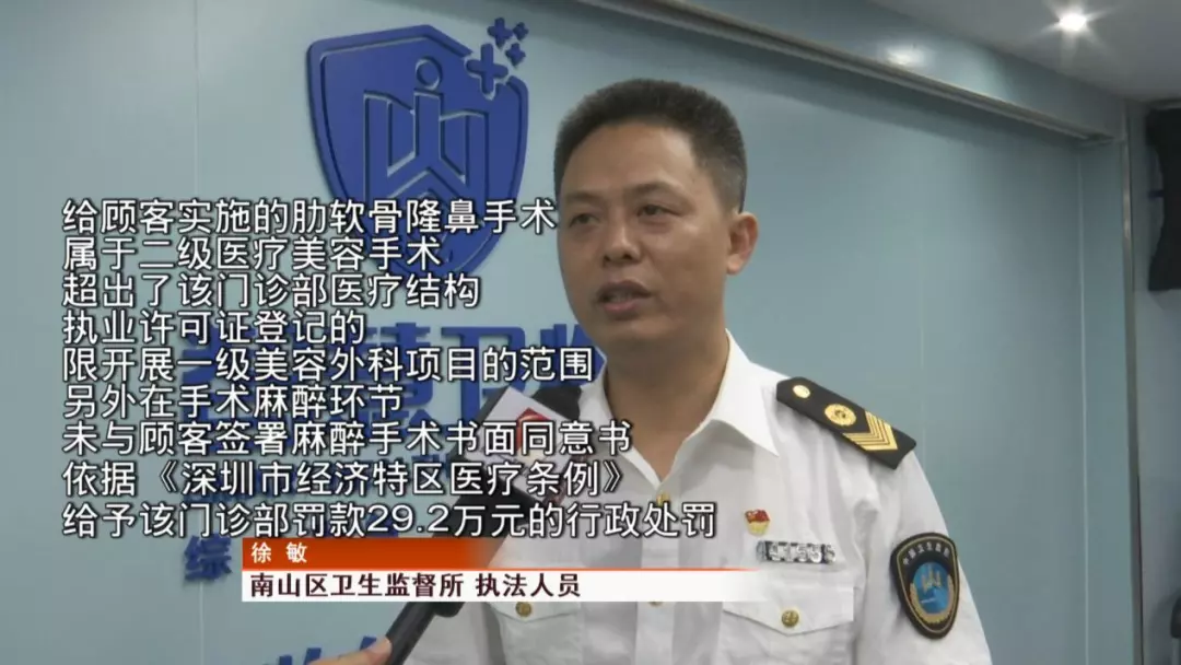 之前,林女士也將情況反映到南山區(qū)衛(wèi)生監(jiān)督所,執(zhí)法人員也到場(chǎng)對(duì)整個(gè)手術(shù)過程進(jìn)行了詳細(xì)調(diào)查。整個(gè)手術(shù)過程,恩吉娜醫(yī)療門診部是否真的存在違規(guī)操作呢?記者也聯(lián)系了南山區(qū)衛(wèi)生監(jiān)督所。