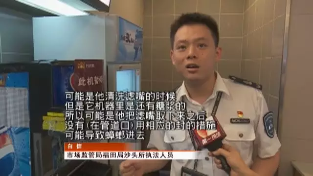 可能是他清洗濾嘴的時(shí)候,里面是個(gè)管道是空的,但是它機(jī)器里是還有糖漿的。這種糖漿特別容易吸引蟑螂或者異物進(jìn)去,所以可能是他把濾嘴取下來(lái)之后,沒(méi)有用封的措施,可能導(dǎo)致蟑螂進(jìn)去。然后把濾嘴裝上去 ,再可樂(lè)倒出來(lái)的時(shí)候,可能蟑螂就跟一起出來(lái)了 。