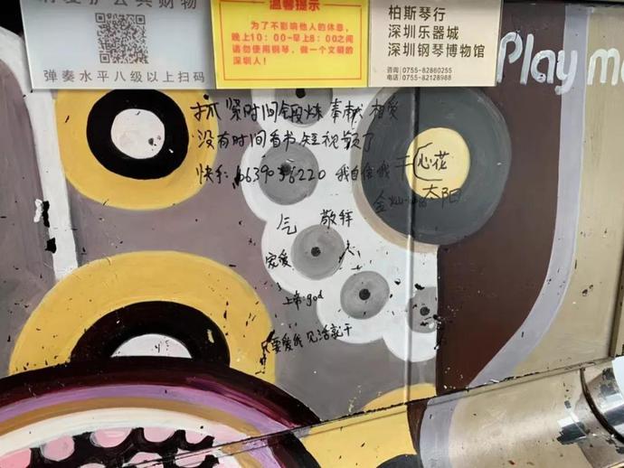 華強(qiáng)北街頭還擺放了公共鋼琴可供免費(fèi)彈奏