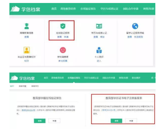 登錄之后,點(diǎn)擊“申請(qǐng)?jiān)诰€驗(yàn)證報(bào)告”,選擇查看《教育部學(xué)歷證書(shū)電子注冊(cè)備案表》。