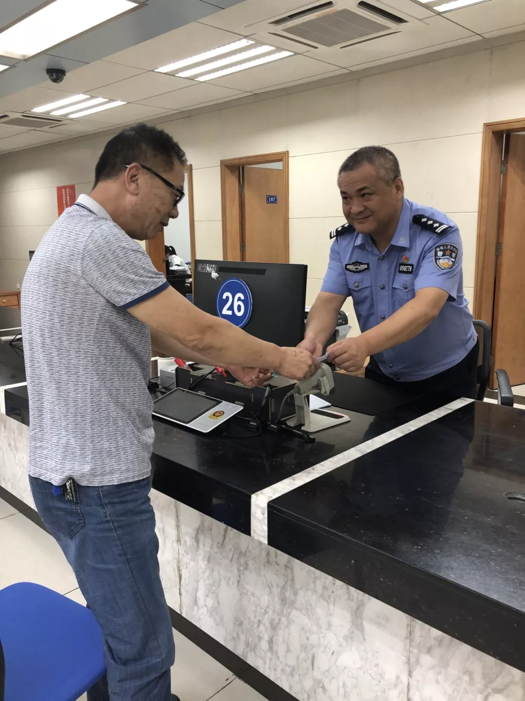 看著快急哭了的學(xué)生和家長,人口管理科民警杜朝陽立刻行動起來,啟動“綠色通道”,同時和聲細(xì)語地安慰道:“孩子別擔(dān)心,我們今天一定給你補(bǔ)好證件,保證不耽誤你考試!”