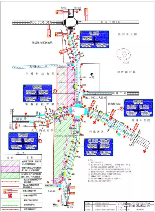松坪站是13號線與24號線(規(guī)劃中)的換乘站。車站南接科興站,北接西麗火車站,總長308.1米。本次松坪站第一階段交通疏解主要施工內容包括:綠化遷移、管線遷改、新建臨時道路、交通設施的拆除及新建。