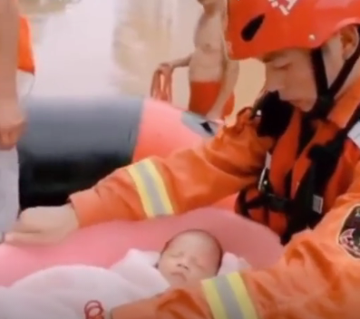 一名未滿月的嬰兒被洪水圍困
