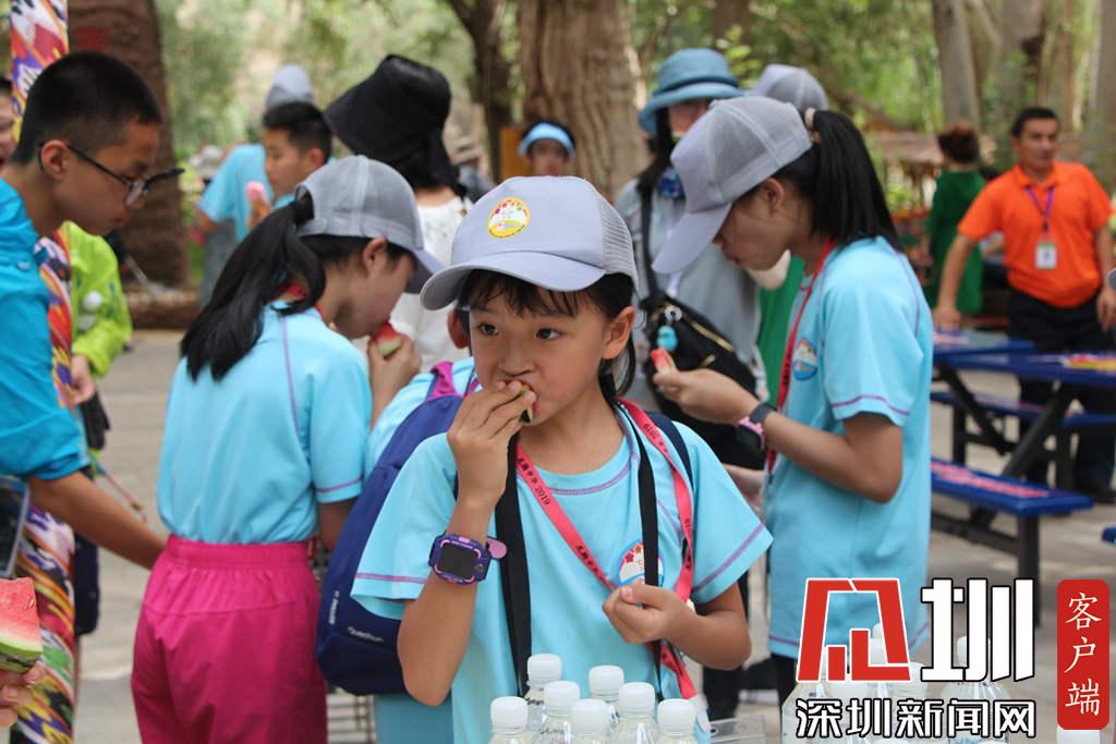 學(xué)生們在品嘗吐魯番的西瓜。(深圳新聞網(wǎng) 記者吳梓欣攝)