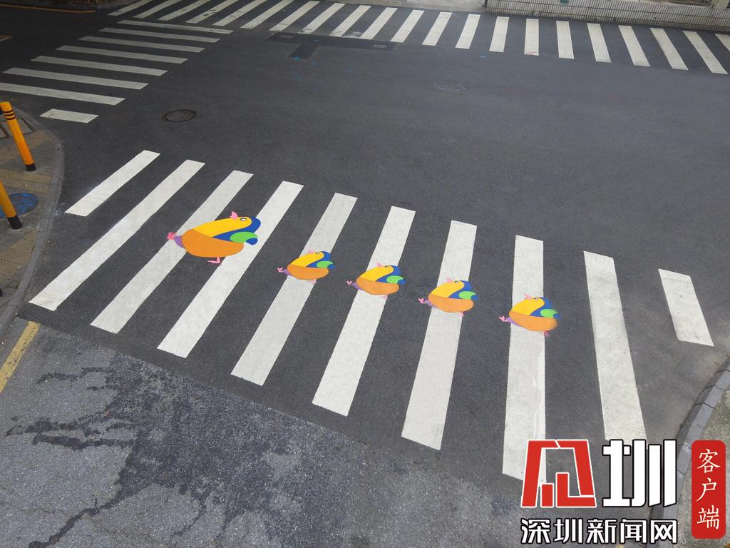 深圳試點兒童友好型交通設施,圖為彩繪有企鵝的斑馬線