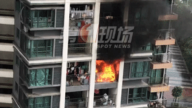 火苗和黑煙不斷從陽臺(tái)躥出