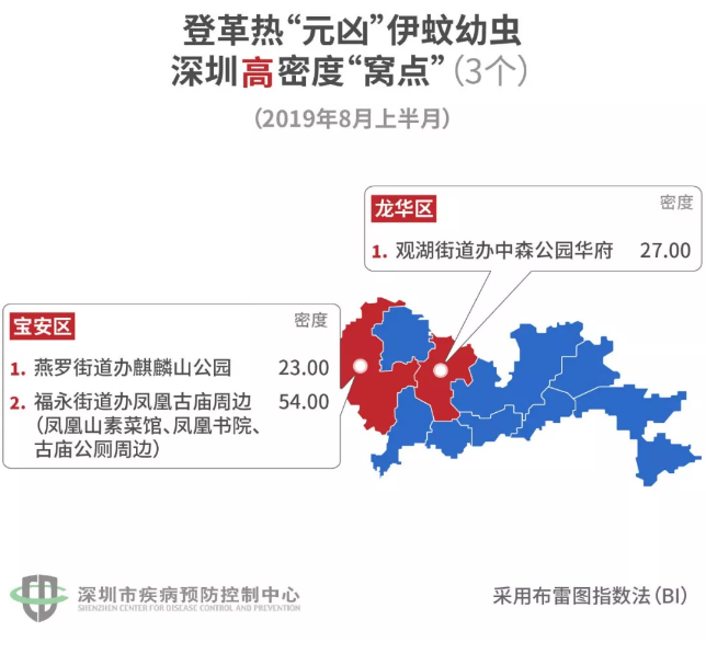 2019年8月1日-15日,通過對(duì)全市419個(gè)監(jiān)測(cè)點(diǎn)進(jìn)行伊蚊密度監(jiān)測(cè),發(fā)現(xiàn)深圳蚊媒密度總體較高,不符合防控要求的監(jiān)測(cè)點(diǎn)有237個(gè),占了56.56%,其中——高傳播風(fēng)險(xiǎn)的有3個(gè)點(diǎn);中度傳播風(fēng)險(xiǎn)的有64個(gè)點(diǎn);低度傳播風(fēng)險(xiǎn)的有179個(gè)。