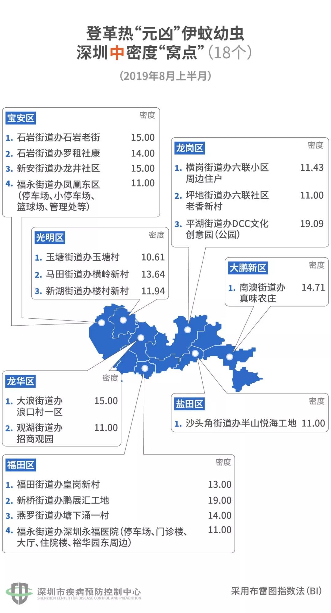 見圳客戶端·深圳新聞網(wǎng)2019年8月21日訊(見圳客戶端·深圳新聞網(wǎng)記者 劉夢婷 通訊員 深疾控)深圳市疾控中心最新發(fā)布的登革熱指數(shù)為II級(2019年8月8日至9月4日),提示本市登革熱感染風(fēng)險(xiǎn)較高。進(jìn)入登革熱流行季節(jié),這時(shí)候我們要做的,就是趕緊看看自己周圍有哪些伊蚊窩藏的“黑點(diǎn)”!8月21日,深圳市疾控中心發(fā)布了一份最新的“蚊子窩”地圖。