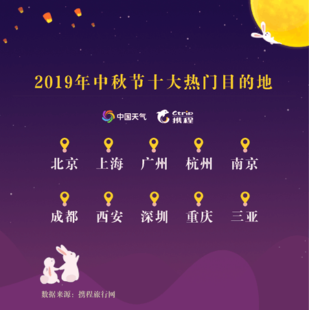 《報(bào)告》還顯示,中秋節(jié)出行高峰集中預(yù)計(jì)在放假前一天,即9月12日?!爱?dāng)天早晨6時(shí)出行人次便已開始劇增?!睆闹饕鲂心康牡乜?,北京、上海、廣州、杭州、南京、成都、西安、深圳、重慶、三亞排名前列。另外,返程高峰將于9月15日上午7時(shí)開始。盡管今年中秋假期為周五至周日,拼假出游的需求仍然旺盛。節(jié)前請(qǐng)上1到2天年假,湊滿一個(gè)5天左右行程的長(zhǎng)線游成為“拼假族”主流選擇。