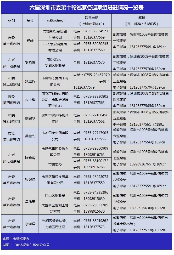 近日,根據深圳市委巡察工作部署,六屆市委第十輪巡察進駐已全部完成,10個巡察組分別對市保健辦、市機場(集團)有限公司、市鹽田港集團有限公司、市燃氣集團股份有限公司、市農產品股份有限公司、市特區(qū)建設發(fā)展集團有限公司、市創(chuàng)新投資集團有限公司、市人才安居集團有限公司等8個單位黨組織開展常規(guī)巡察,對深圳市深汕特別合作區(qū)和市史志辦開展機動式巡察,對市政府發(fā)展研究中心黨組開展巡察“回頭看”;提級對光明區(qū)委政法委開展掃黑除惡專項斗爭進行專項巡察,對羅湖區(qū)財政局、坪山區(qū)財政局黨組開展巡察“回頭看”,對光明區(qū)司法局、大鵬新區(qū)規(guī)劃土地監(jiān)察局黨組開展機動式巡察。