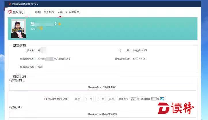 模塊中涉及到中介機構(gòu)和中介人員的星級評價,來自深圳市房地產(chǎn)中介協(xié)會(以下簡稱“深房中協(xié)”)與各大中介機構(gòu)組成的專家委員的定期聯(lián)合評定。無論是中介人員還是中介機構(gòu),都需從一星經(jīng)數(shù)次評選提升至五星等級,越高星級的人員與機構(gòu),意味著更少的投訴信息與更加優(yōu)良的誠信記錄。目前上線的模塊中,僅有大約10%的中介人員獲得了五星認定。
